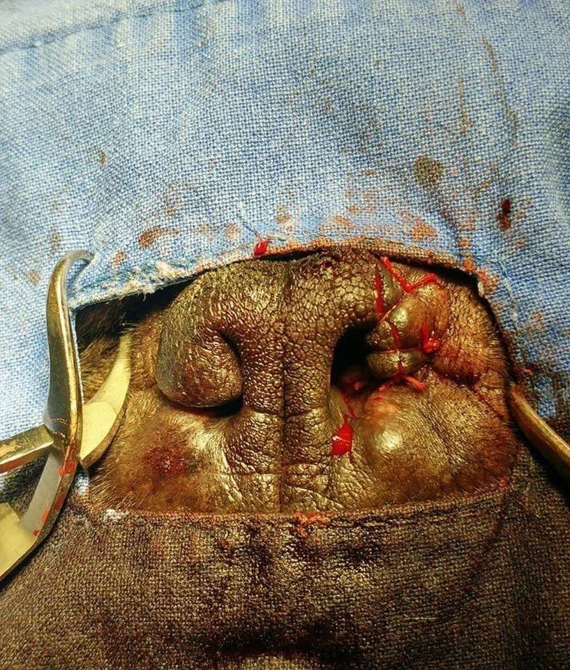 Severe stenosis - Nostrils are almost closed. The dog may switch to oral breathing from nasal breathing with very gentle exercise or stress.