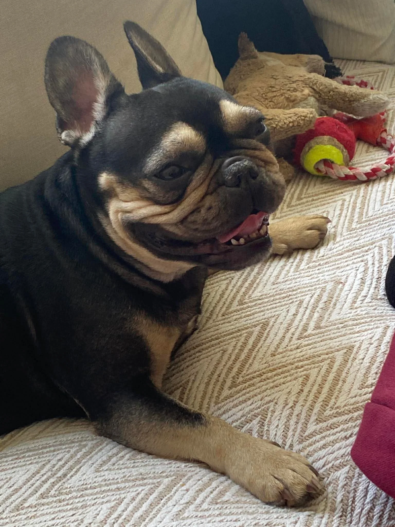 She’s also a playful girl who loves interactive games! Lola enjoys a bit of “mouthy” play and will often throw her paws around in a fun, bouncy way — she’s full of personality and joy when she’s happy and relaxed.